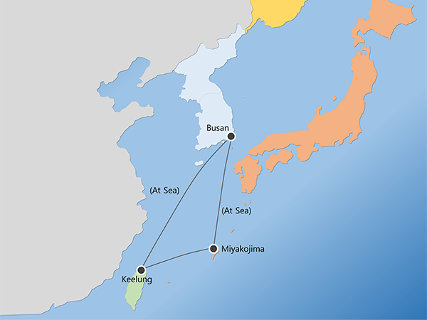 한국에서 출발해 러시아와 일본을 다녀오는 환동해항로, 중국 북동부 도시를 다녀오는 황해항로, 대만과 일본 오키나와의 남방항로 등, 다양한 항로와 알찬 일정의 항해가 준비되어 있습니다.